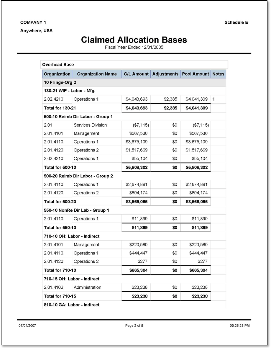 Sample Claimed Allocation Bases report.