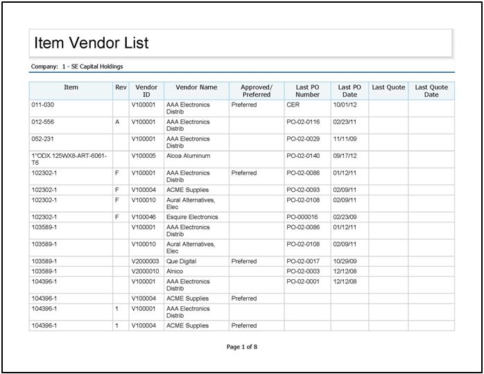 Click the Part value to drill thru the Item Vendor List.