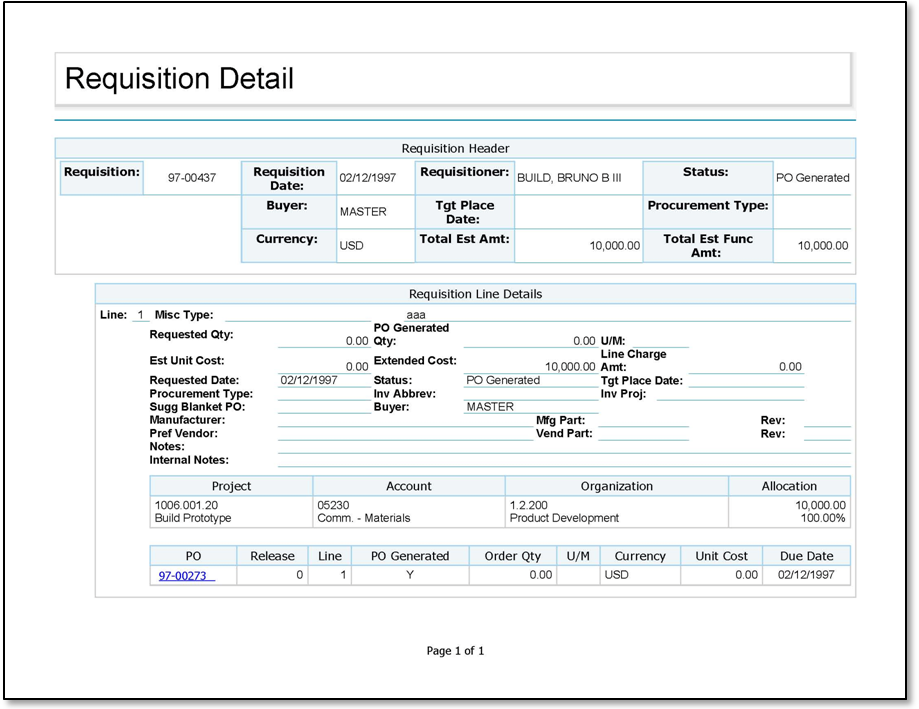 Sample Requisition Detail report.