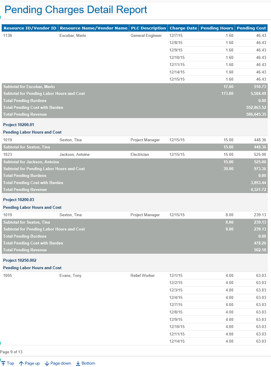 Pending Charges Detail Report