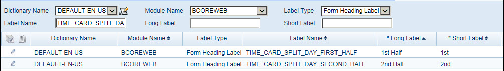 The Label Names are TIME_CARD_SPLIT_DAY_FIRST_HALF and TIME_CARD_SPLIT_DAY_SECOND_HALF.