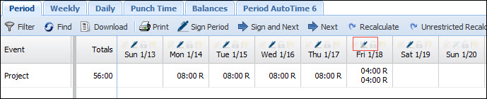 To sign one half of a split day, you must use the Sign Week or Sign Period button when only one half of the split day is visible in that period or week.