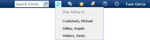 In order to use the Act As form or the Act As icon, the Act As form must be enabled in your Security Role.