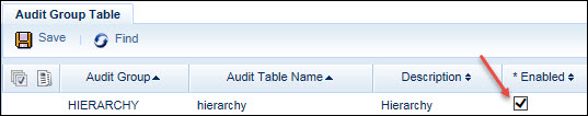 Click Save to save the settings. To disable a table from auditing, uncheck the Enabled box and click Save.