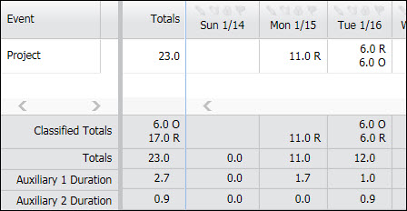 Auxiliary Hours are calculated according to the Auxiliary Hours Ruleset assigned to the person’s Pay Policy. The LABOR_ALL_MT service uses this ruleset to calculate Auxiliary Hours.