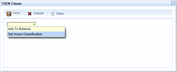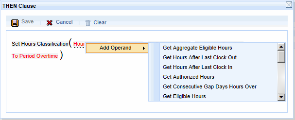 The THEN Clause form will display. Click directly on an operand to modify it.