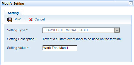 Note: When the supervisor modifies this event, the Event Prompts – Elapsed pop-up window will display even though the Work Thru Meal1 event was punched from the terminal, because this event is an elapsed version of the Meal1 event.