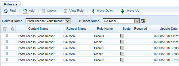The Post Process Event rules will be used to post the "penalty" event when the employee does not receive the appropriate meals/breaks. These rules will also be used to remove or prevent a penalty event from posting if an employee works through the meal period and waives the penalty pay.