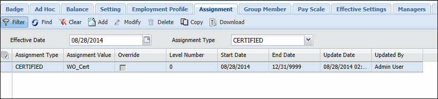 Use the Assignment tab of the Employee form to certify a person.