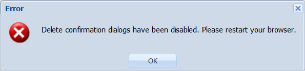 If you check this box, you will not be able to delete a record in Shop Floor Time again until you restart your web browser. The next time you try to delete a record, the message Delete confirmation dialogs have been disabled. Please restart your browser will appear.