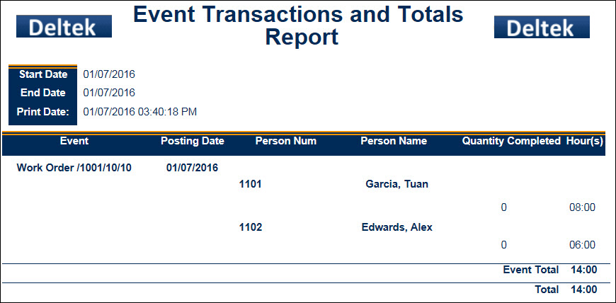 If you enter a Person Number, the report will only include events that have been posted to the transaction table by that person.