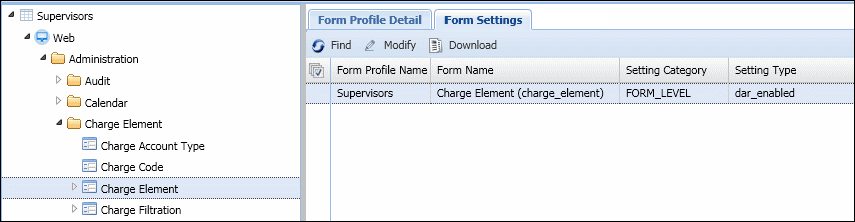 4. To display all the available settings for this Form Profile, go to the left side of the main form and click the top level folder (it displays the name of the Form Profile). Then click the Form Settings tab.