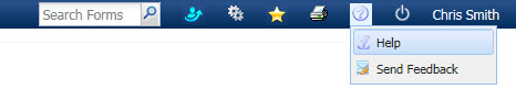 Note: If you disable the Send Feedback form in your Security Role, the drop-down menu will not appear when you click the Help button. Instead, clicking the Help button will display the help file.