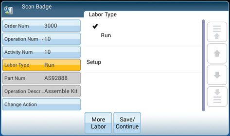 When this option is set to true, the action buttons will appear at the bottom of the screen to the right of the list of prompts. In the illustration below, a Batch Labor is being started and the user can select More Labor to add a labor to the batch or Save/Continue start the labor without adding more labor.