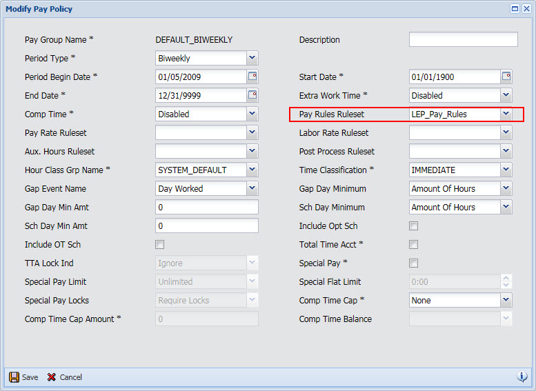 Once you have defined your Late Event Premium rule on the Calc Rule form, you need to add it to a Ruleset. This ruleset must then be assigned to your Pay Policy.