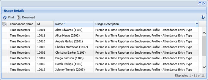 The Time Reporters component defines the number of persons authorized to enter time, excluding Administrators. If a supervisor or payroll manager will enter his or her own time, they are included in this license count.