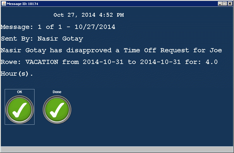 Note: Dialog messages can only be displayed on a terminal or the Web Time Clock, even if Alert on Web is checked.