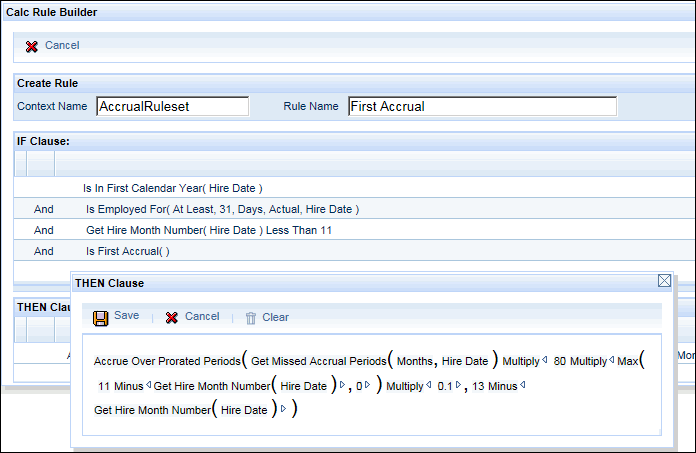 Use the Calc Rule and Rulesets forms to create the rules that the ACCRUAL service will use to calculate partial year prorated accruals.