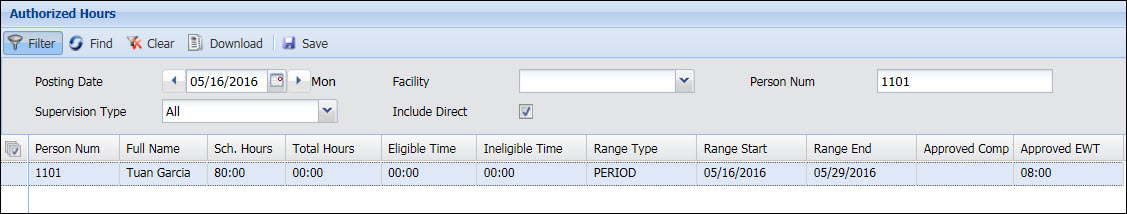 Use the other filter fields to select the employees for whom you want to authorize EWT and Comp Time hours. Then click Find.