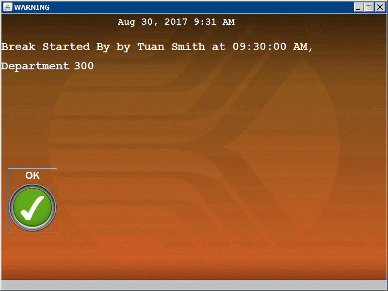 When an event posts successfully from a terminal, a message displays (e.g., “Clock In Successful”). You can include the rounded time and the department name in this success message.