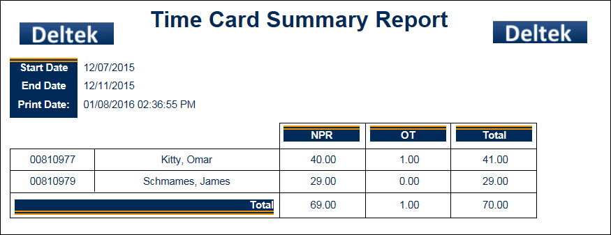 Data in the Time Card Summary Report
