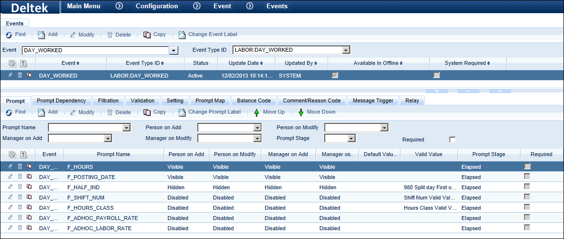 In order to use the Time Completion feature, you must configure a Time Completion (Day Worked) event, configure the Time Completion settings in the Attendance Policy, and schedule/run the TIME_COMPLETION service. You may also need to configure messaging for Time Completion. If you have part-time employees or other employees whose scheduled hours change often, you can configure their minimum required hours. These configurations are explained below.