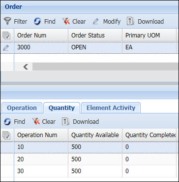 Labor posted against a work order and operation can result in material movement based on the Order Policy and Move Scheme configuration. For example, a work order has three operations – 10, 20, and 30. A user posts a Quantity Complete on operation 10 and this quantity is deducted from the Quantity Available of operation 10 and added to the Quantity Available for operation 20.