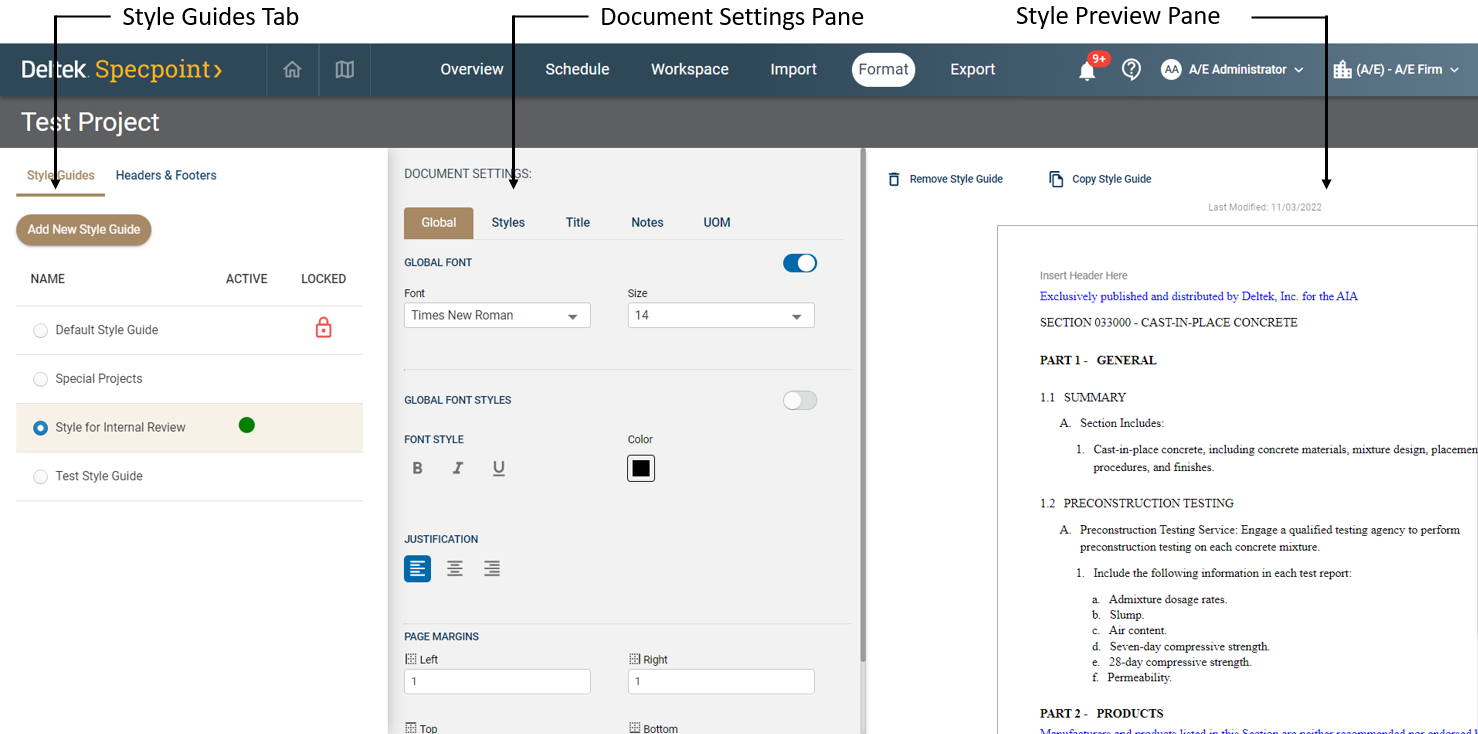 For style guides, use this page to configure style guides and formatting settings and determine how your project content displays in the exported project files and section preview.