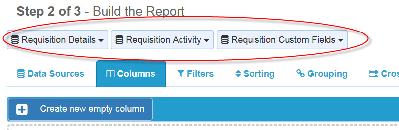 Add columns to your report based on the buckets that display above the Columns tab, as exemplified in the following image: