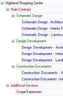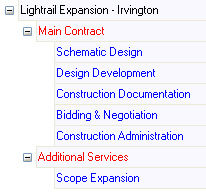 To subtotal and summarize phases on an invoice, you set up a billing group. You may want to group and subtotal all preliminary phases or all departments working on the same task.