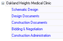 In Ajera, you start setting up a project by building the project work breakdown structure. At its most basic level, a project consists of a project and phases.
