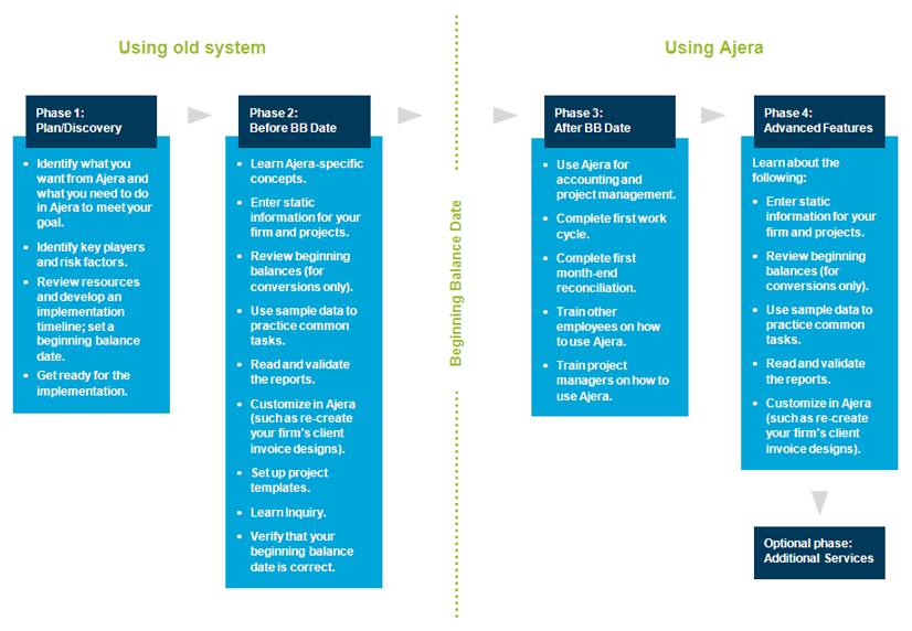 Below is a brief overview of the implementation phases. Notice the importance of the beginning balance date (referred to as BB date in the figure). The rest of this course addresses each phase in depth.