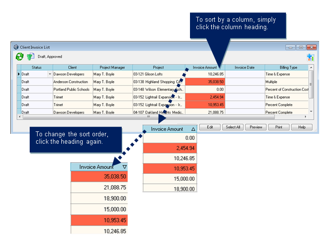 To see all the invoices again, you would right-click the column heading and click Clear Filter.