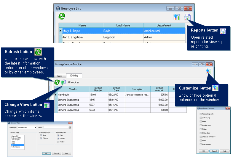 These buttons appear on many Ajera