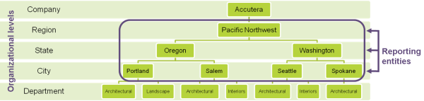 If your corporate structure consists of multiple layers and you have created organizational levels, you can use the organizational levels to create reporting entities.