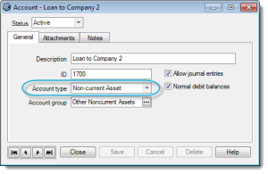 • Set up an account for the lending company, with an account type of Non-current Asset.
