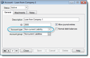• Set up an account for the borrowing company, with an account type of Non-current Liability.
