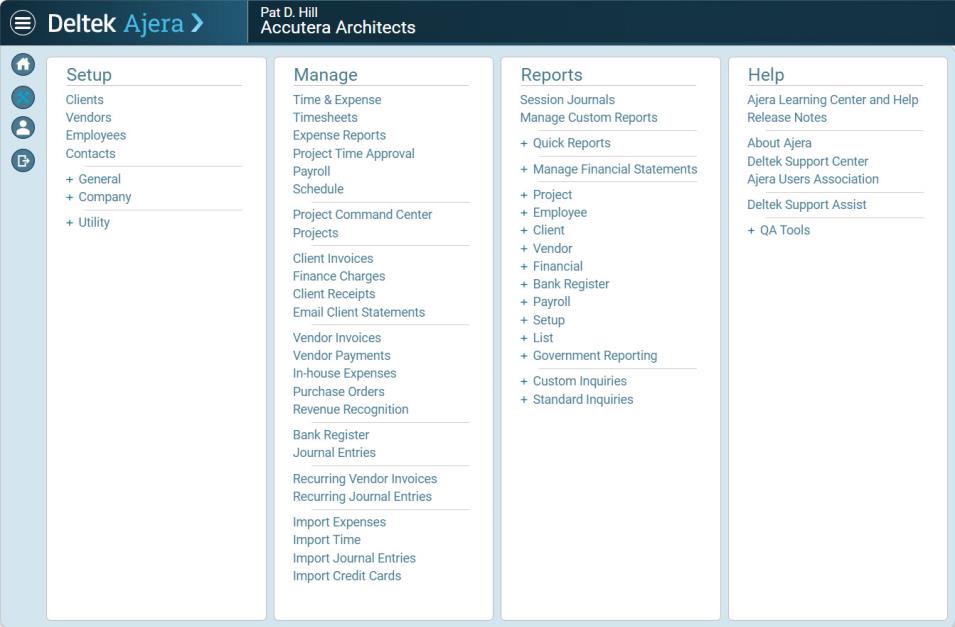 to open the menu. You navigate through Ajera by clicking an item in the menu. Click