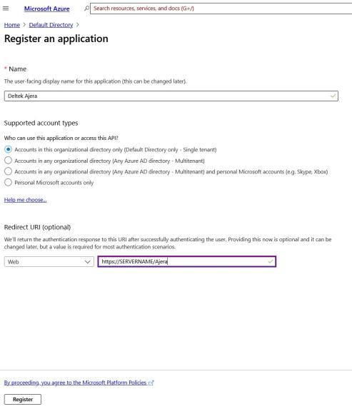 - Under Redirect URI (Optional), select Web and enter your Ajera customer URL.