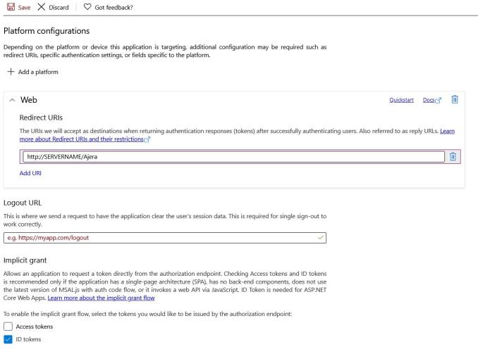 - In the Advanced settings section, under Implicit grant, select the ID Tokens option.