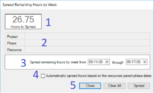 - This option allows you to automatically spread hours based on the estimated start and estimated completion dates assigned to phases instead of the dates assigned to the project.