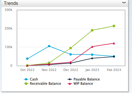 To see the trend over past months for Payables, Receivable, WIP, and Cash |