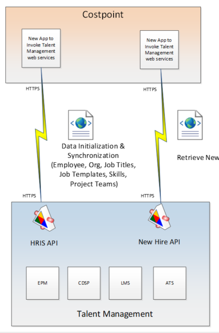 The integration between Costpoint and Talent Management utilizes existing and new APIs in the Talent Management.
