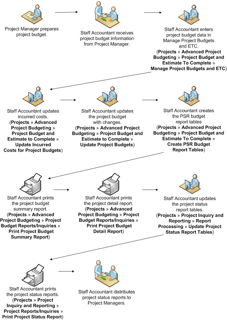 The Advanced Project Budgeting Process Flow describes the overall process involved in the Advanced Project Budgeting module.