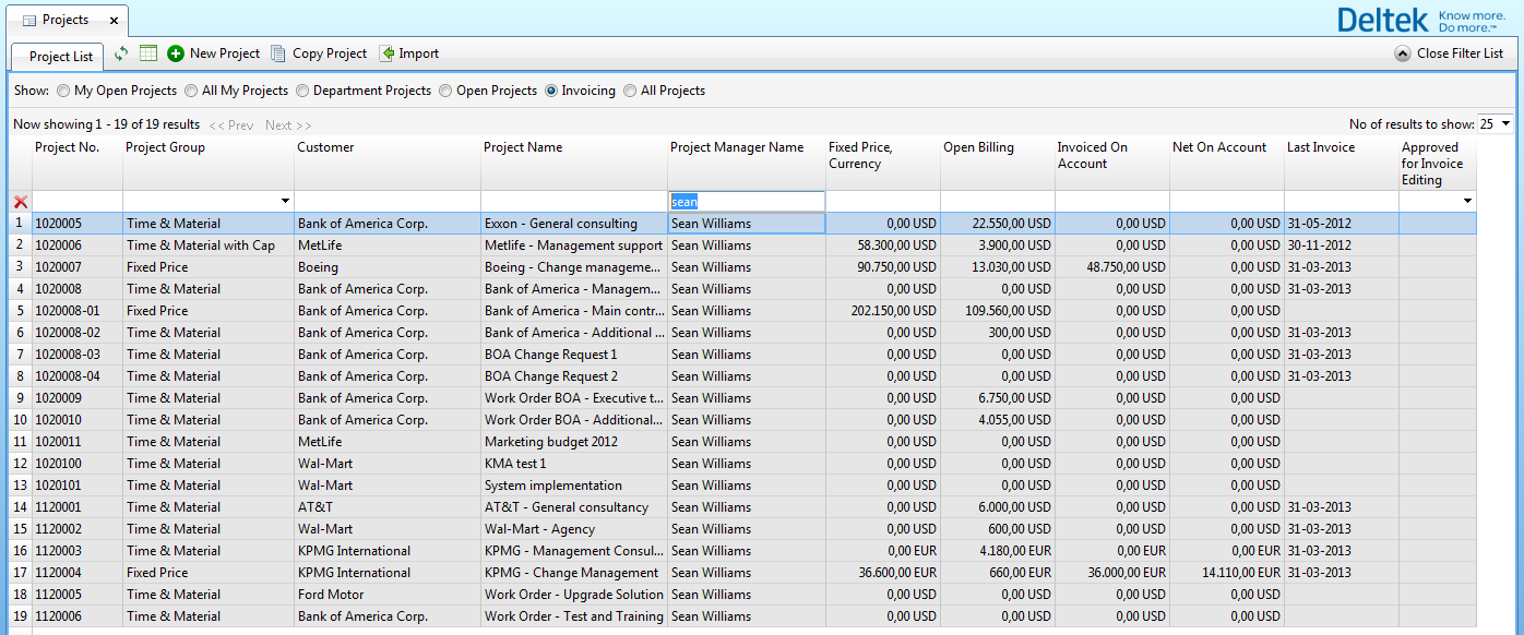PMs can see all projects for which they are responsible, divided between time and material projects and fixed-price projects. The open billing shows how much is ready to be invoiced.