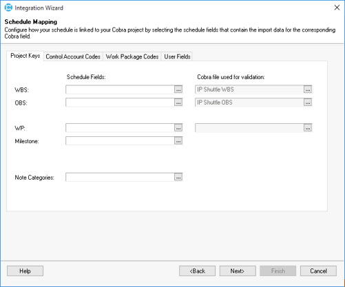 7. Use the Schedule Mapping page to link your project to the schedule based on your configuration settings.