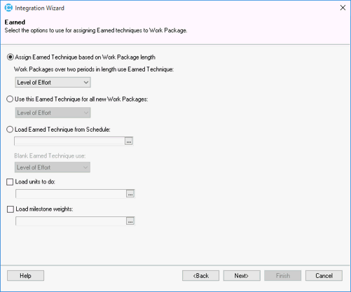 8. On the Earned Value page, select your preferred settings for how the earned value technique will be created.